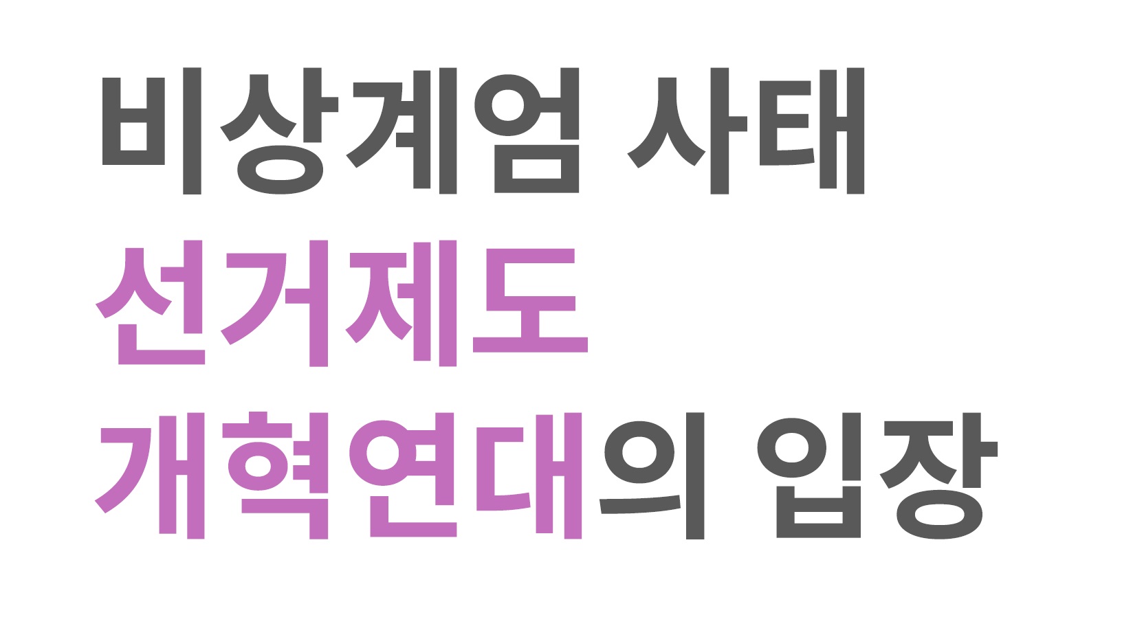 계엄 선포를 듣고 야밤에 국회로 달려온 사람들이 있다. 민의의 전당을 침탈하려는 군대를 온 몸으로 막은 사람들이 있다. 진실을 알리고 저항하기 위해 자신의 일터로 뛰쳐간 사람들이 있다. 그 숱한 사람들! 이들을 한데 묶는 말은 ‘대한민국 국민’이다. 선거제도개혁연대는 대한민국 국민에게 깊은 존경을 표한다.